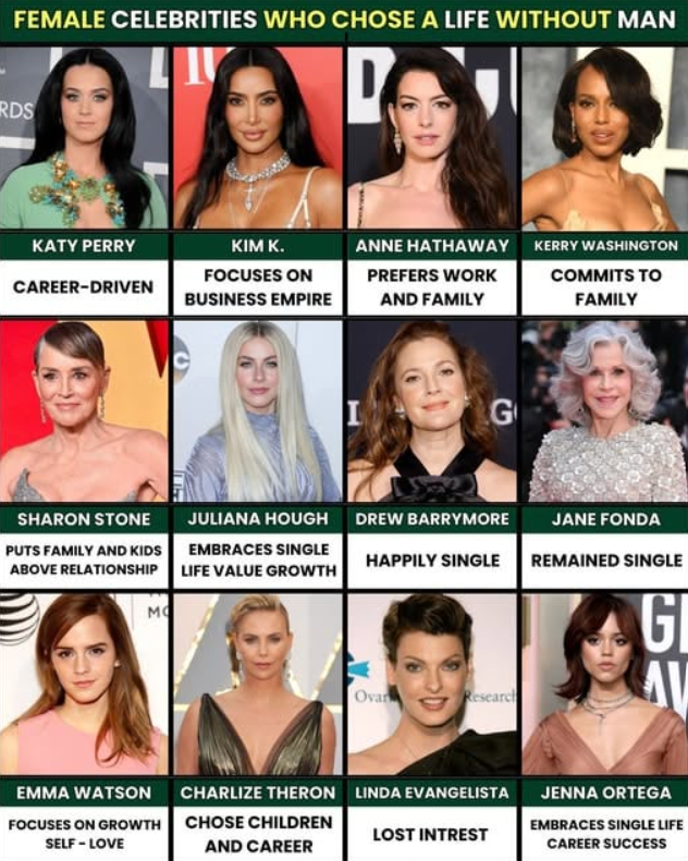 In a world where relationships and traditional gender roles often take center stage, many women are taking a different approach and choosing to live their lives without being defined by a romantic partner. These strong, independent women have built incredible careers, embraced personal growth, and found fulfillment in ways that don’t necessarily revolve around having a man by their side. Let’s take a look at some of the most inspiring female celebrities who have chosen to focus on their careers, families, and self-love instead.