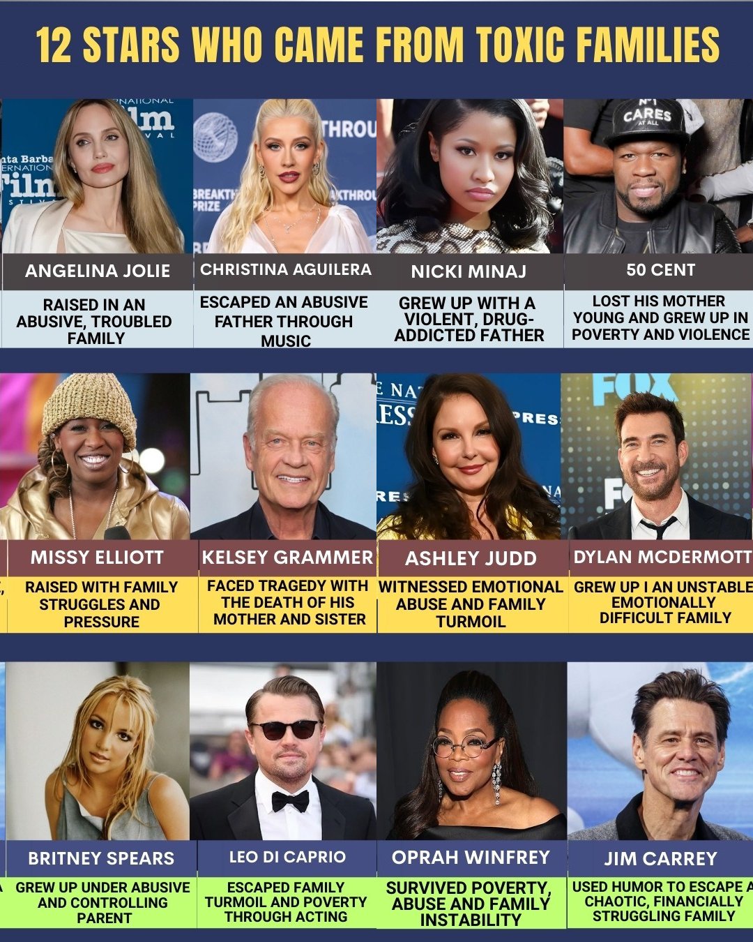 Many of Hollywood’s most beloved and successful stars have come from backgrounds filled with hardship, turmoil, and personal challenges. Despite facing toxic family dynamics, these stars have triumphed over their difficult upbringings to carve out their places in the limelight. Their stories of resilience and determination serve as inspiration to many. Let’s take a closer look at 12 iconic stars who rose above their troubled family environments.