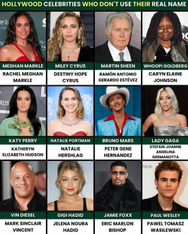 These celebrities prove that a name can be more than just an identity—it can also be a brand. While many of these stars are known by their stage names, they each have unique stories behind their choices, showing that in Hollywood, reinvention and the power of a name go hand-in-hand with success.