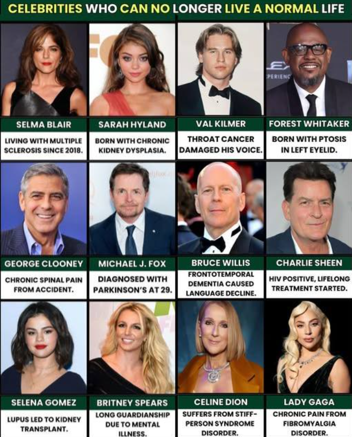 Life in the spotlight can be glamorous, but for many celebrities, it also means facing personal health challenges that significantly impact their lives. Some of these famous figures struggle with chronic illnesses, disabilities, or health conditions that make it difficult for them to lead what many consider a “normal” life. Despite their hardships, they continue to inspire millions with their resilience, determination, and strength. Here’s a look at some of the celebrities who face life-altering conditions and have become advocates for raising awareness and fighting through adversity.
